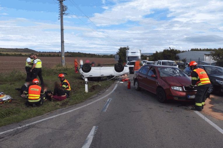Vážná nehoda mezi Újezdem u Brna a Sokolnicemi: Auto se po střetu převrátilo na střechu