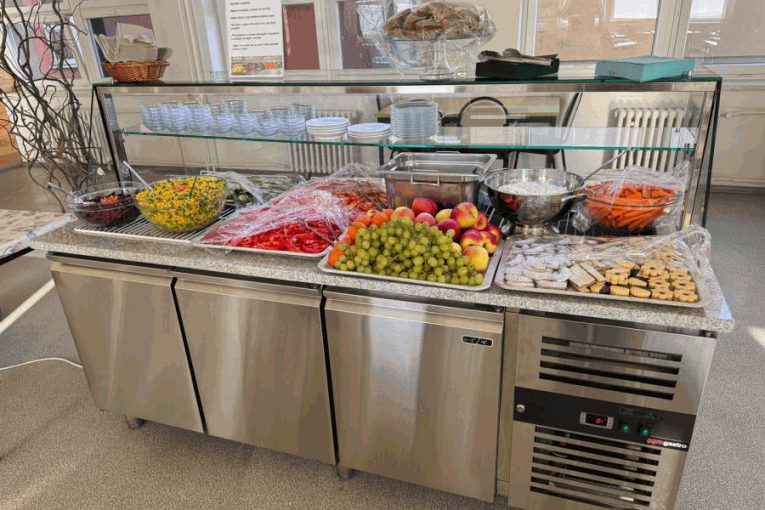 Ovoce, zeleninu nebo nejrůznější saláty si ve školní jídelně vyberou samy děti