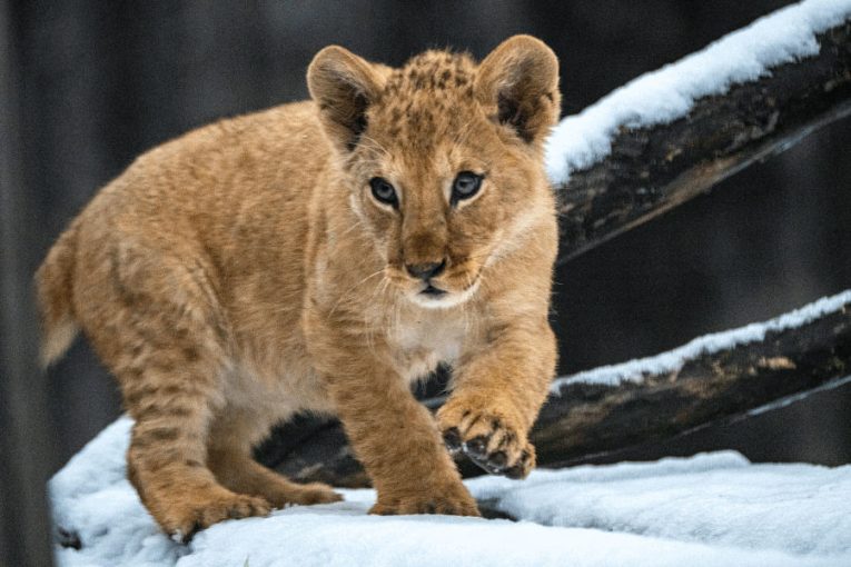 Podívejte se na první setkání hodonínských lvíčat se sněhem: Koťata jsou zdravě zvídavá