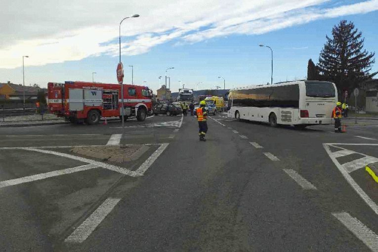 VIDEO: Střet zájezdového autobusu a osobního automobilu v Nesovicích: Řidič autobusu nadýchal 0,7 promile