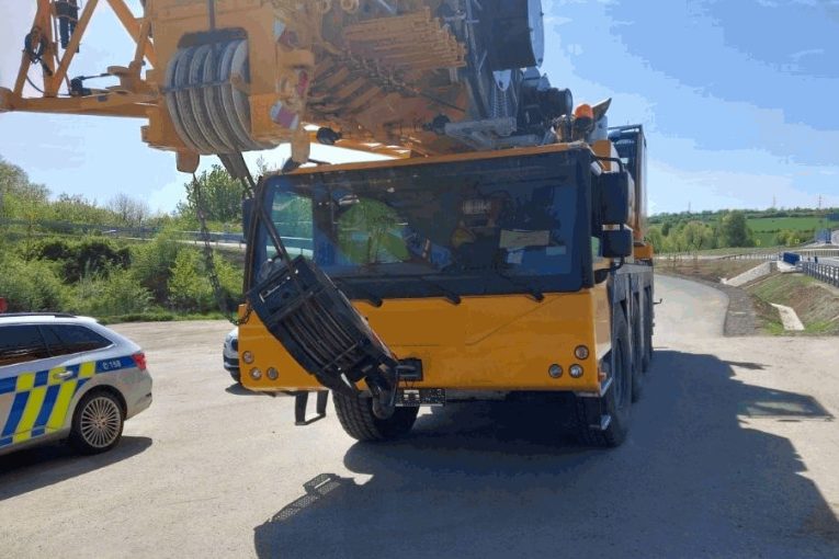 VIDEO: Řidič přetíženého jeřábu odmítl vážení. Na dálnici ho nepustili