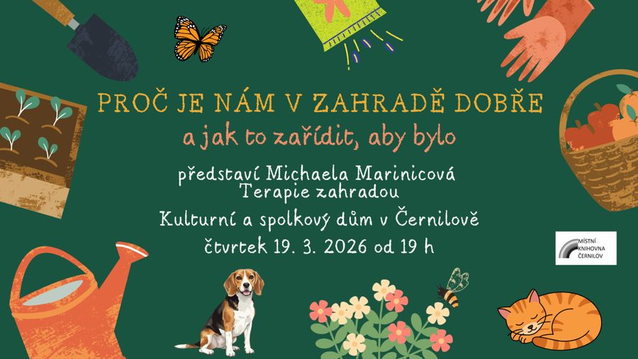 Kulturní a spolkový dům v Černilově hostí ve čtvrtek 19. března 2026 od 19 hodin přednášku zaměřenou na vliv zahrady na psychiku a zdraví. Program propojí osobní zkušenosti s odbornými poznatky o tom, jak přírodní prostředí působí na lidskou pohodu.