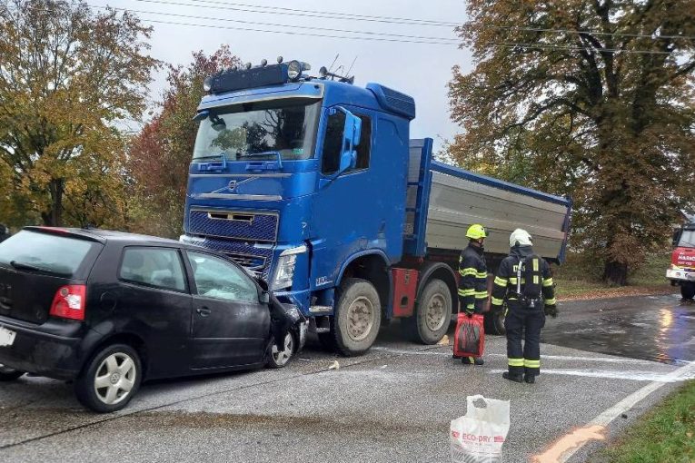 Nehoda u Velkého Vřešťova: osobní auto skončilo pod kamionem