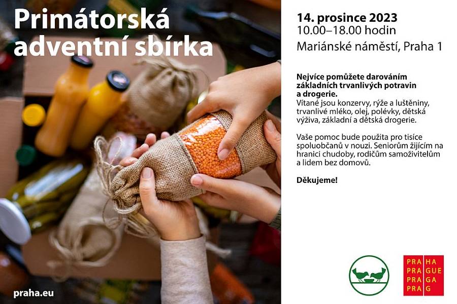 Ve spolupráci právě s touto organizací pak hlavní město také připravuje v den konání Zastupitelstva hl. m. Prahy, tedy 14. prosince 2023 od 10:00 do 18:00 hodin, Primátorskou adventní sbírku. Uskuteční se na Mariánském náměstí před budovou Nové radnice a určena je všem potřebným, zejména seniorům žijícím na hranici chudoby, rodičům samoživitelům a lidem bez domovů.