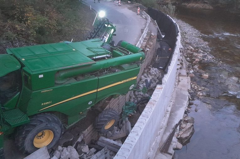K dopravní nehodě, při níž vozidlo částečně sjelo mimo komunikaci v právě opravovaném úseku, zasahovalo hned několik jednotek. Některé zdroje uváděly, že kombajn sjel do výkopu kvůli tomu, že se nevešel pod železniční most.