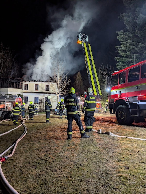 Na místo byla povolána také výšková technika – automobilový žebřík AZ 40 ze semilské centrální hasičské stanice a AZ 30 dislokovaný na hasičské stanici v Jilemnici a velkoobjemové cisterny. „Pro zdolání požáru byly postupně během zásahu nasazeny až čtyři vodní proudy, hašení probíhalo zvenku i uvnitř budovy,“ popsala mluvčí hasičů.