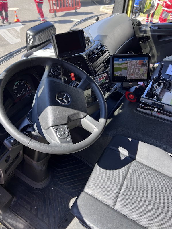 Technologický „mozek“ zásahu: Díky 360° kameře na výsuvném stožáru, kamerovému systému a moderní IT technice slouží vozidlo jako koordinační bod, který přenáší data přímo na operační středisko.