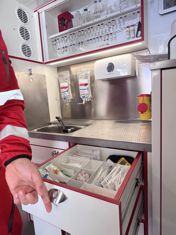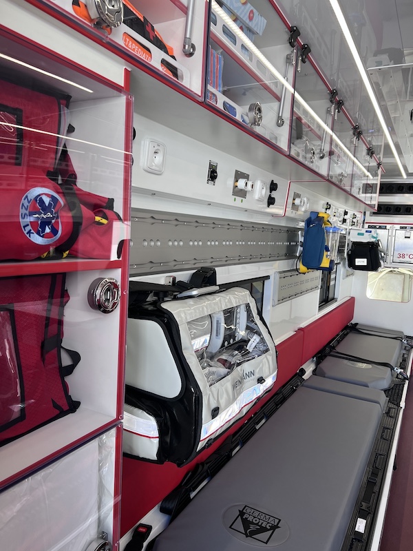 • Zdravotnické systémy: Kyslíkové rozvody (uvnitř i vně), termobox a chladicí box na léčiva a infuze.