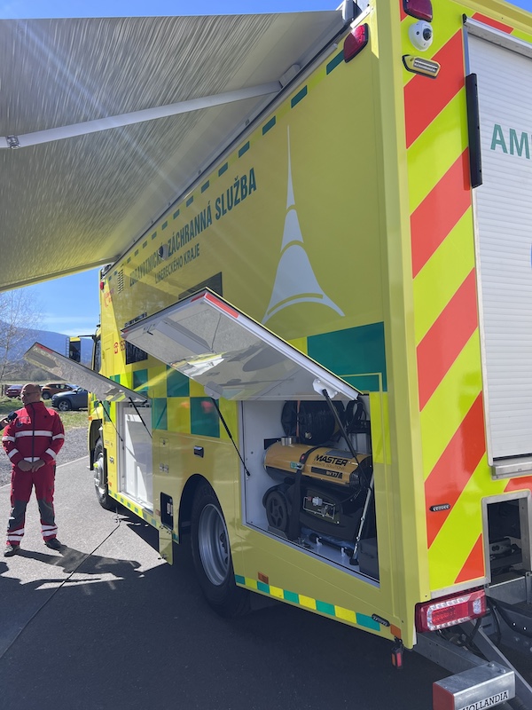 Za důležité považuje i to, že nové vozidlo má vlastní energetické zázemí, klimatizaci, topení, vnitřní i vnějším osvětlení, výsuvný osvětlovací stožár nebo vyhřívaný nafukovací stan. „To nám, spolu s dalším vybavením, umožňuje nasadit vozidlo i tam, kde není možnost připojit se k potřebné infrastruktuře“.