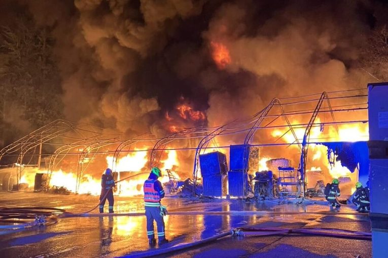 VIDEO: Jedenáct hasičských jednotek zasahovalo u požáru skladovací haly v České Lípě