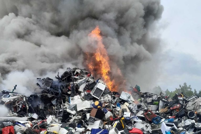 Hasiči v akci: Oheň zachvátil skládku elektroodpadu ve Stráži pod Ralskem