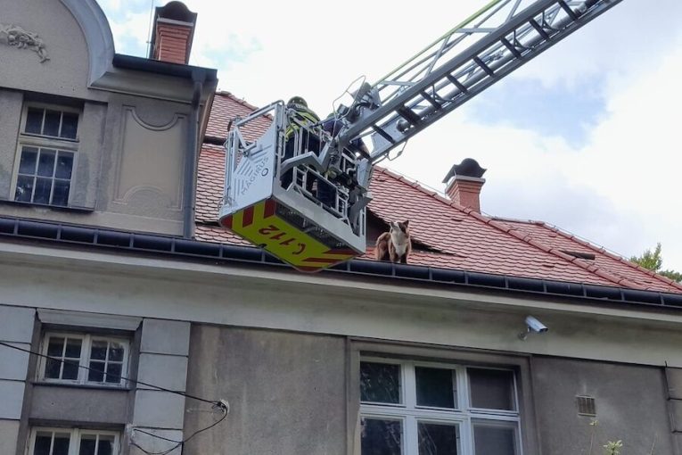 Haf, z té výšky jde strach! Hasiči v Liberci zachraňovali fenku ze střechy domu