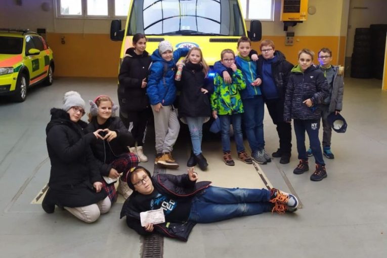 FOTO: Školáci z Nového Jičína navštívili zdravotnickou záchrannou službu. Děti záchranáři naučili i první pomoc