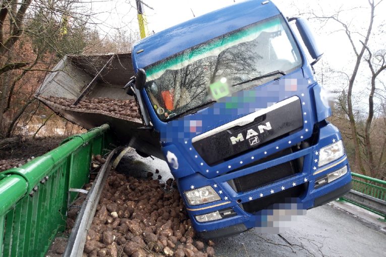 RYCHNOVSKO – K bouračce došlo toto úterý, krátce po půl šesté ranní, na silnici II/317. Řepný náklad se částečně vysypal, zábradlí na mostě se pak doslova zabodlo do boku návěsu. K vyproštění …