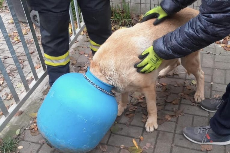 Retrívrovi uvázla hlava v plastovém barelu, ven ho tahali hasiči!