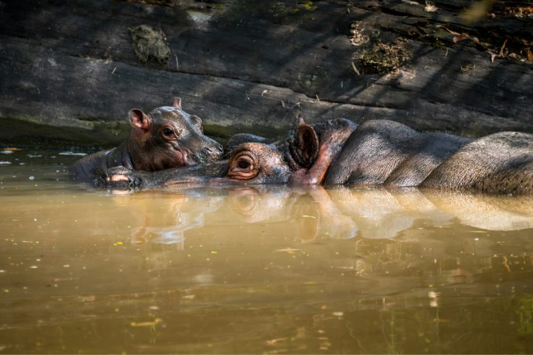 Samice hrocha Hula přivedla na svět mládě přímo v Jezeře hrochů v Safari Parku
