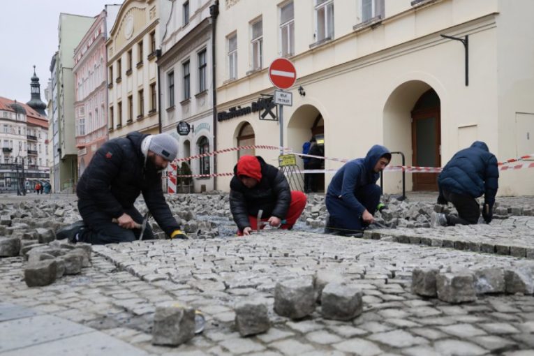 ul. Hlavní náměstí, ul. Sv. Ducha u Aspecu – chodník ze žulových kostek 4/6 štípaných, barva šedá