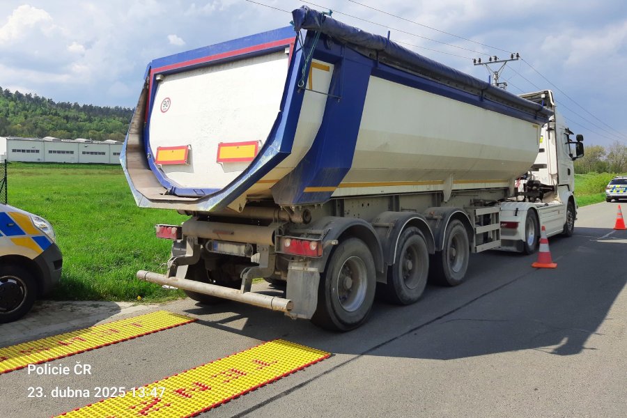 Šoférka řídila ve středu 23. dubna nákladní soupravu s přívěsem a převážela písek. „Při nízkorychlostním kontrolním vážení zjistili kolegové přetížení nákladního vozidla o téměř 2 tuny. Mladá žena dále nedodržela doby bezpečnostních přestávek v jízdě,“ sdělila mluvčí policie Soňa Štětínská. A do třetice, kontrolou technického stavu zjistili policisté poškození dvou pneumatik návěsu, kdy u jedné byla kromě pneumatiky poškozená i její ocelová kostra.