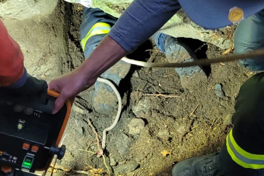 jednotky společnými silami, za pomocí krumpáčů a lopat, rozšířili vchod do nory tak, aby se do ní mohl dostat nejmenší z nich a zvíře vysvobodit. Hasič se jistil lanem. Po vstupu do nory bylo nutné ještě část hlíny a kamení odhrabat rukama, než bylo možné fenu uchopit za nohy. Následně na signál provedli hasiči vytažení svého kolegy i společně se zvířetem zpět do bezpečí.