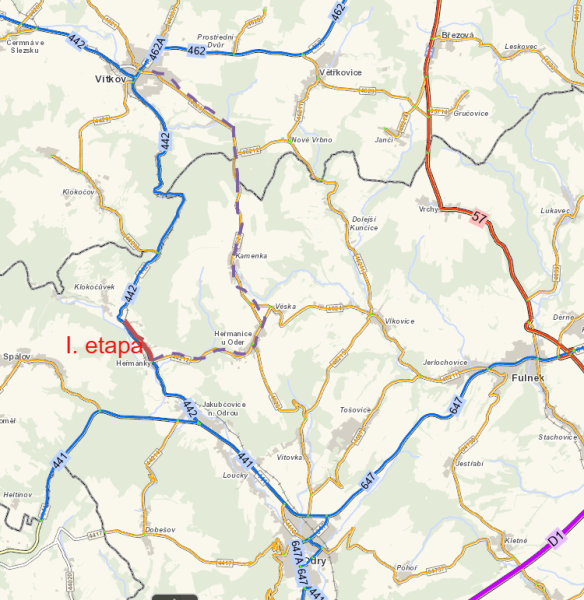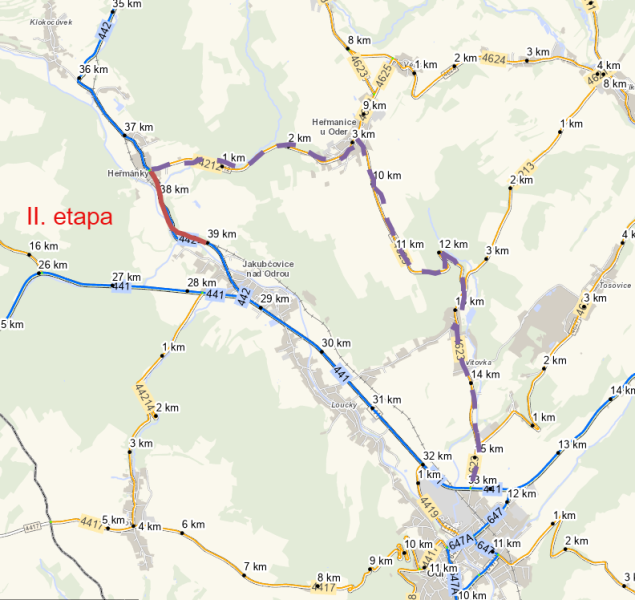 Práce budou probíhat za plné uzávěry ve dvou etapách. V první etapě výstavby objížďka povede z Heřmánek po silnici III/44212 směr Heřmanice u Oder a dále přes Kaménku po III/4623 směr Vítkov. V srpnu nastane přerušení z důvodu výluky na trati Budišov nad Budišovkou – Suchdol nad Odrou a vedení náhradní autobusové dopravy povede místem stavby. Průjezd pro vozidla IZS bude zachován. Objízdná trasa pro autobusovou a automobilovou dopravu povede po vyznačených objízdných trasách.