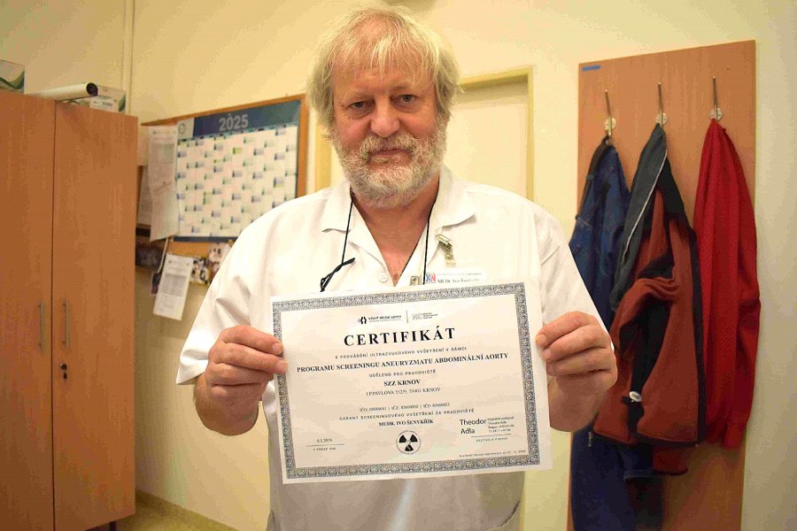 Zatímco zdravá aorta má v břišní části šířku do tří centimetrů, vlivem degenerativních změn může dojít k rozšíření na dvojnásobek. Toto rozšíření neboli aneuryzma dokáže včas odhalit tým Radiodiagnostického oddělení pod vedením primáře Ivo Šenkyříka. Krnovská nemocnice v rámci nového celostátního programu screeningu výdutě břišní aorty už v květnu vyšetřila první zájemce. „V posledních letech jsem ve svém okolí zaregistroval několik úmrtí způsobených protržením břišní aorty. Usiloval jsem tedy o to, aby se i naše nemocnice zapojila do screeningového programu, jehož smyslem je především záchrana lidského života. Navíc díky programu získá ministerstvo a zdravotnické instituce představu o tom, kolik mužů je výdutí aorty ohroženo,“ uvedl k novince ředitel krnovské nemocnice Ladislav Václavec.