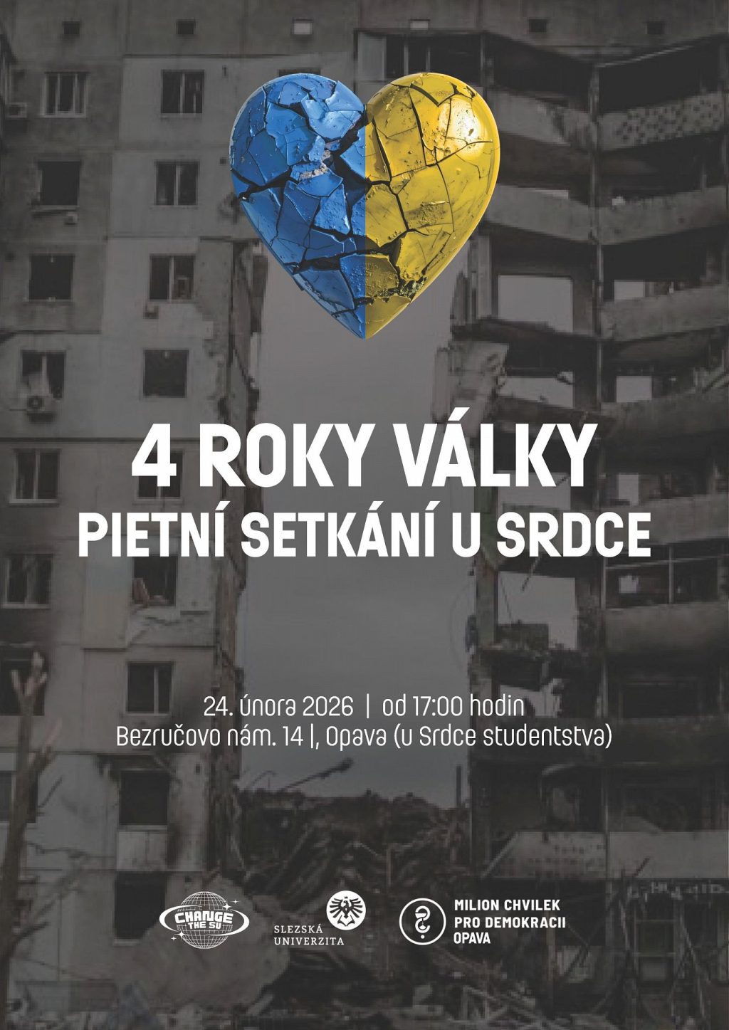 Pietní akt s názvem 4 roky války se koná na symbolickém místě u Srdce studentstva na Bezručově náměstí 14 v Opavě, které se na chvíli promění v prostor pro tiché zamyšlení a vyjádření sounáležitosti s lidmi čelícími válečným útrapám. Akce se uskuteční v úterý 24. února 2026 v 17:00.