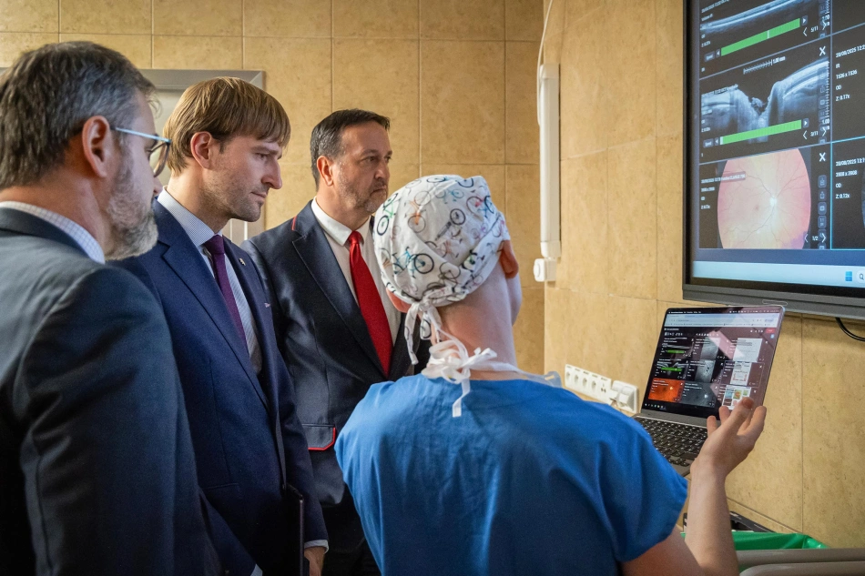 Návštěvu v úterý 24. února zahájil prohlídkou zrekonstruovaného stravovacího provozu pro pacienty i zaměstnance, a poté zavítal na Oční kliniku. „Ministrovi jsme představili náš inovativní datový systém, který propojuje všechny vyšetřovací přístroje a pacientská data do přehledného digitálního prostředí a přiblížili jsme mu také práci s operačním 3D zobrazovacím systémem,“ popsal průběh návštěvy přednosta Oční kliniky Jan Němčanský.