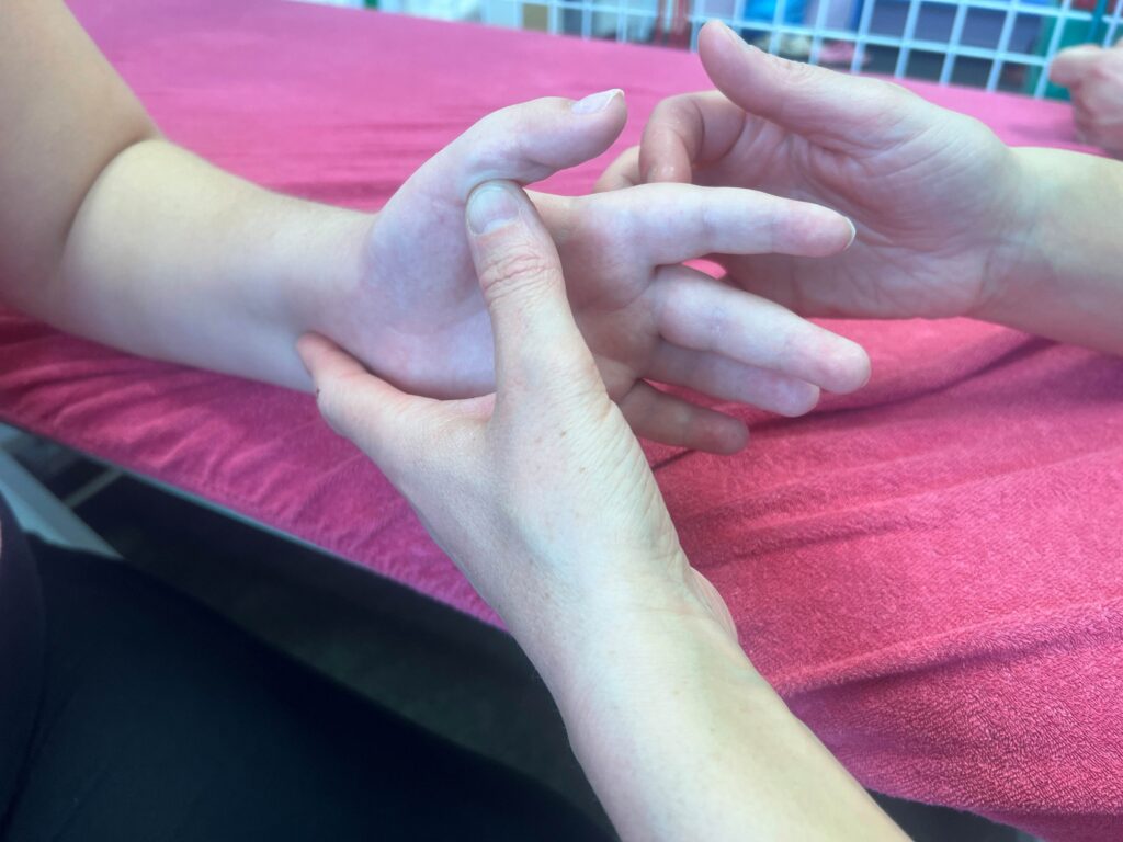 Součástí terapie je nově i individuálně zhotovená ortéza z nízkoteplotního termoplastu, kterou v Klimkovicích vyrábějí přímo na míru pacientům. „Ortézu nejprve nahřejeme, vytvarujeme podle ruky a postupně ji upravujeme podle toho, jak se končetina vyvíjí. Není to jednorázová pomůcka – s dítětem roste a přizpůsobuje se jeho pokrokům,“ doplňuje terapeutka.