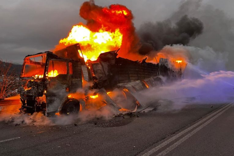 VIDEO: Poblíž Mostů u Jablunkova hořel kamion s jablky, kompletně zablokoval dopravu