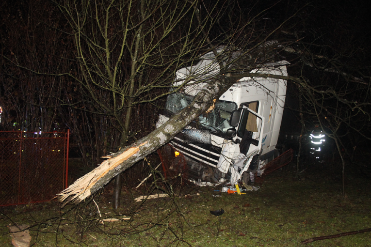 FOTO: Kamion postupně narazil do stromu, elektrického vedení a sloupu. Co k nehodě sdělili policisté?