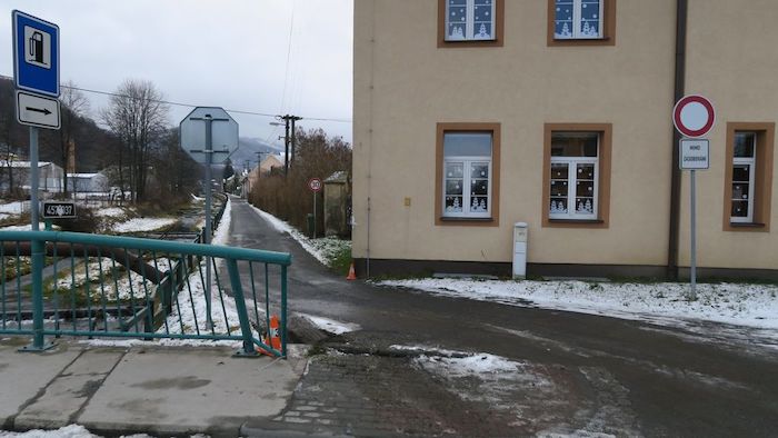 Policisté včera před polednem řešili dopravní nehodu ve Zlatých Horách, která se stala na Nádražní ulici. “Čtyřiašedesátiletý řidič nákladní soupravy při hledání firmy chybně odbočil z hlavní silnice do ulice Jesenické nábřeží. Přitom nerespektoval dopravní značku B13 (zákaz vjezdu vozidel přesahující vyznačenou mez),” popsal příčiny nehody policejní mluvčí Libor Hejtman. Když si řidič svůj omyl uvědomil, začal z boční ulice vyjíždět zpět na hlavní silnici. Přitom si nedával moc pozor a narazil do budovy mateřské školky a pak do kovového zábradlí. Zároveň si poškodil palivovou nádrž a na silnici mu částečně vytekla nafta. Celkově napáchal škodu za 371 tisíc korun. Naštěstí nebyl nikdo zraněn. Z důvodu poškození palivové nádrže policisté řidiči zadrželi malý techničák a za dopravní přestupek dostal pokutu.