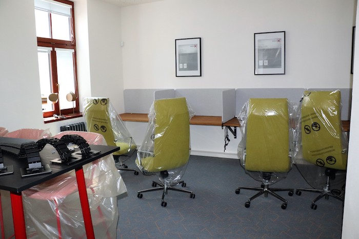 V prvním patře si pak budete moci prohlédnout nahrávací místnost s akustickým obkladem, relaxační lodžii pro odpočinek a otevřený prostor pro coworking. „Aby se tu uživatelé při práci navzájem nerušili, je součástí kanceláří také oddělená kabinka určená k telefonování. A kdo chce více soukromí třeba jen k hovoru ve dvou, může využít speciální boxy,“ přiblížil prostor náměstek přerovského primátora Vladimír Lichnovský. V prvním patře je taky další laboratoř a dílna. „Dílny budou rozděleny podle zaměření na elektrotechnickou, mechanickou a kreativní. Nástroje a nářadí v nich bude podle zaměření, tedy od multimetru, mikroskopu, pájecí stanici – přes pilky, brusky, frézky, vrtačky – až po 3D tiskárny, skenery a lisy,“ doplnila Petra Hirschová z přerovského magistrátu.
