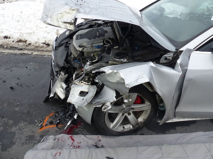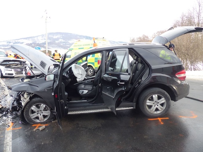 Čtyřiadvacetiletý řidič Mercedesu jel v neděli 14. ledna odpoledne od Mikulovic na Zlaté Hory. V zatáčce ale přejel do protisměru a srazil se s protijedoucím Audi, jehož řidič to pořádně odskákal. „V levotočivé zatáčce se nedržel při pravém okraji vozovky a přejel do protisměru, kde se čelně střetl s protijedoucím vozem zn. Audi,“ popsala nehodu policejní mluvčí Tereza Neubauerová. Šestadvacetiletý řidič Audi utrpěl vážná zranění, musel pro něho přiletět vrtulník. Další vrtulník přiletěl pro dvaadvacetiletého spolujezdce z Mercedesu. Vliv alkoholu byl u řidiče Mercedesu vyloučen dechovou zkouškou, u řidiče Audi byl kvůli zraněním nařízen odběr krve v nemocnici. Hmotná škoda je odhadnuta na půl milionu korun.