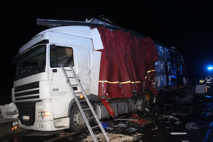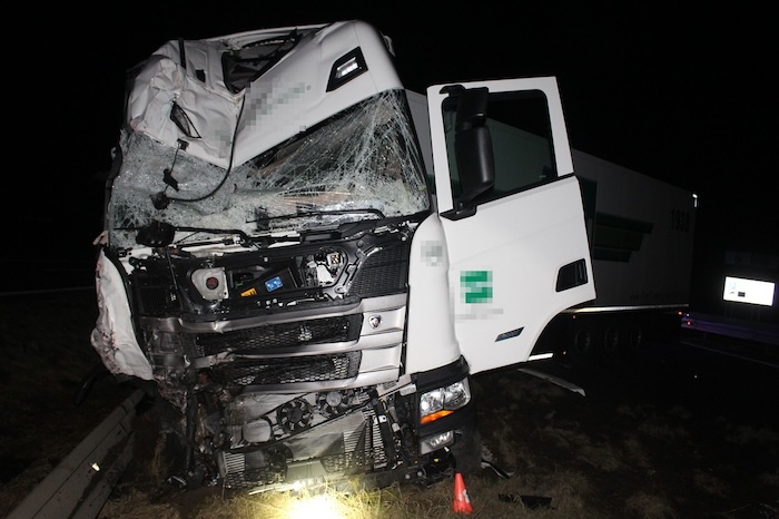 Nehoda se stala v noci, kdy 53letý řidič tahače Scania s návěsem narazil do stojící nákladní soupravy u pravého okraje. „Třiapadesátiletý řidič nákladního vozidla Scania s návěsem se plně nevěnoval řízení a narazil do stojící nákladní soupravy u pravého kraje vozovky. Stojící tahač Daf s návěsem zde musel zastavit z důvody poruchy a stál zde asi minutu,“ vysvětlil Hejtman. Nehoda se naštěstí obešla bez zranění. Ani jeden z řidičů nebyl pod vlivem alkoholu. Policisté odhadli škodu celkem na 4 miliony korun.