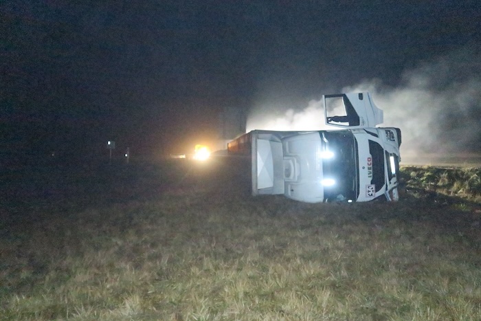 Nehoda se stala těsně před Olomoucí. „Na 272. km u Nemilan tu dnes třicet minut po půlnoci havaroval řidič nákladního vozidla,“ informoval policejní mluvčí Libor Hejtman. Sedmapadesátiletý řidič tahače s návěsem za jízdy vlivem únavy usnul, vyjel vpravo mimo dálnici, kde se na travnaté ploše převrátil na pravý bok. Kamion převážel zhruba šest tisíc kuřat. Řidiči se nic vážného nestalo, z preventivních důvodů byl převezen do Fakultní nemocnice Olomouc. Pravý jízdní pruh je v místě nehody uzavřený, policisté odhadují omezení do třinácti hodin. Řidič nebyl pod vlivem alkoholu, celková škoda se odhaduje na půl milionu korun.