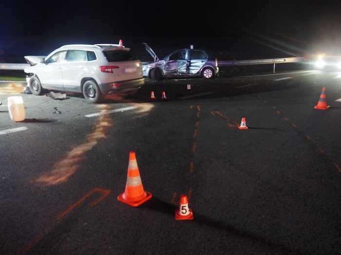 Nehoda se stala v sobotu před 20. hodinou. Starší řidič ve Fabii jel po vedlejší silnici druhé třídy ve směru od Bludova a křižovatku se silnicí první třídy I/11 chtěl projet v přímém směru na Vyšehoří. Přitom ale nedal přednost Škodě Karoq, která jela po hlavní, po obchvatu od Chromče na Klášterec. „Došlo k čelnímu nárazu Karoqu do levé strany Fabie, po kterém skončila na svodidlech,“ sdělila k nehodě policejní mluvčí Miluše Zajícová. Dechová zkouška byla u obou řidičů negativní. Řidič Fabie skončil v šumperské nemocnici a řidič se spolujezdkyní z druhého vozu skončili v nemocnici v Olomouci. Policisté předběžně odhadli škodu na Fabii na 30 000, na Karoqu na 500 000 a na svodidlech na 20 000 korun.