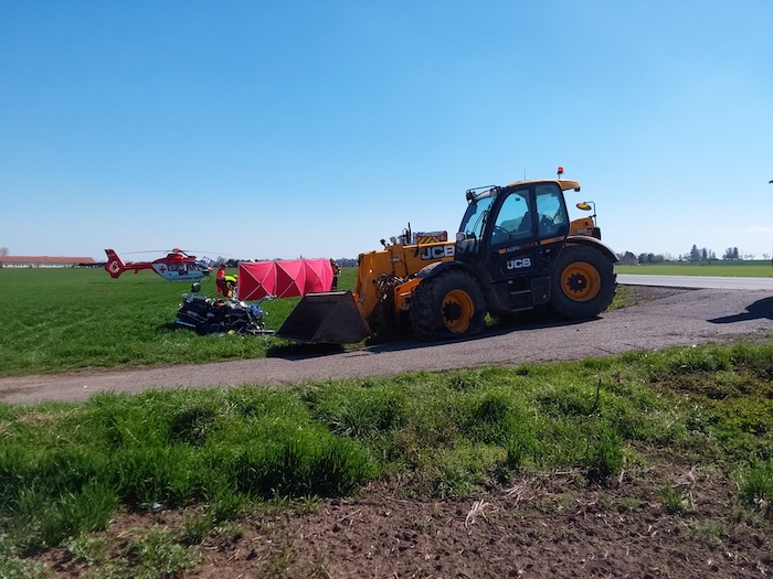 V pátek 4. dubna odpoledne boural motorkář ve středních letech na motorce Yamaha mezi Čehovicemi a Čelčicemi na Prostějovsku. Ten předjížděl traktor, který zrovna začal odbočovat vlevo na polní cestu. Motorkář narazil do předního levého kola traktoru a byl odhozen na pole. Musel pro něho přiletět vrtulník, který ho transportoval do fakultní nemocnice v Olomouci. Řidič traktoru zraněn nebyl a dechová zkouška a test na drogy vyloučili, že by řídil pod vlivem. Hmotnou škodu policisté předběžně vyčíslili na 300 000 korun. “V souvislosti s nehodou byly zahájeny úkony trestního řízení pro trestný čin těžké ublížení na zdraví z nedbalosti,“ doplnila policejní mluvčí Zajícová. Okolnosti nehody a míru zavinění policie šetří.