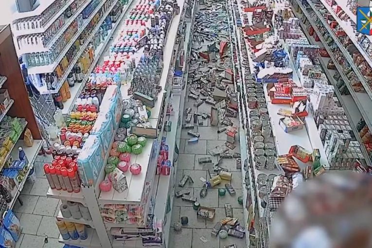 Pak se přesunul k nedalekému obchodu, kde začal vykládat další vodu. Provozovateli prodejny řekl, že voda je pro lidi zdarma. Po vyložení se odebral na hřiště a po několika hodinách se vrátil. Odpočíval v autě, ale majitel obchodu ho požádal, aby odjel. Nepodařilo se mu však rozjet, a jak uvedl, „něco do něj vjelo“ a začal ničit vše, co mu přišlo pod ruku.