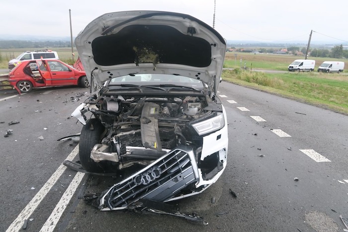 Dva zraněné si vyžádala nehoda dvou osobních aut, která se stala ve čtvrtek 18. září u Podolí u Mohelnice. „Šestašedesátiletá žena jela dopoledne s vozem zn. Peugeot 106 po místní komunikaci od Křemačova. Na křižovatce nedala přednost v jízdě vozu zn. Audi Q5 s 69letým řidičem, který jel od Mohelnice,“ vysvětlila příčinu nehody policejní mluvčí Tereza Neubauerová. Při srážce se zranila řidička a její spolujezdec. Zraněnou řidičku museli nejprve hasiči ze zdemolovaného auta vyprostit, poté ji předali posádce záchranářského vrtulníku, zraněného spolujezdce převezla do nemocnice sanitka. Dechová zkouška vyloučila vliv alkoholu u řidiče Audi, u řidičky Peugeotu nebylo možné dechovou zkouškou provést kvůli zranění, proto u ní byl nařízen odběr krve. Způsobenou škodu policisté předběžně vyčíslili na 330.000 korun.