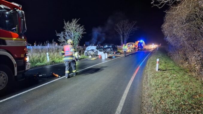 Dvě osobní auta se srazila v sobotu 8. listopadu večer u Břuchotína na silnici II/635, která je alternativou k dálnici mezi Olomoucí a Litovlí. „Nehoda si vyžádala 8 zraněných osob, přičemž jedna z nich utrpěla zranění, kterým následně podlehla,“ informovala policejní mluvčí Petra Vaňharová kolem 9. hodiny večer. Na místě zasahovali hasiči, kteří museli nejprve čtyři cestující vyprostit ze zdemolovaného vozu. „Za pomoci hydraulických rozpínáků jsme rozevřeli prostor pod přístrojovou deskou a vyprostili 2 osoby. Dále jsme ustřihli zadní dveře, B sloupky a vytáhli další 2 osoby na páteřní desce a předali je ZZS,“ vysvětlil mluvčí hasičů Josef Koláček.
