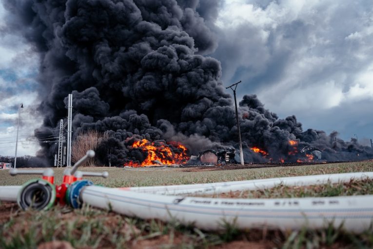 Po havárii se vykolejené cisterny okamžitě ocitly v plamenech. Mimořádnou událost oznamovaly desítky místních obyvatel i řidičů, kteří projížděli okolo. Ohlušující výbuchy, hustá oblaka černého dýmu a plameny šlehající do výšky několika desítek metrů totiž bylo těžké přehlédnout. Vlak převážel v 17 cisternách téměř 1025 tun toxického benzenu a hrozila jedna z největších ekologických katastrof svého druhu v Evropě. Událost se naštěstí obešla bez obětí a zranění osob.