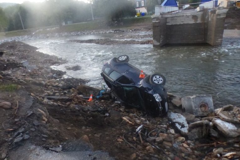 Jel po silnici utržené při povodních a skončil v řece