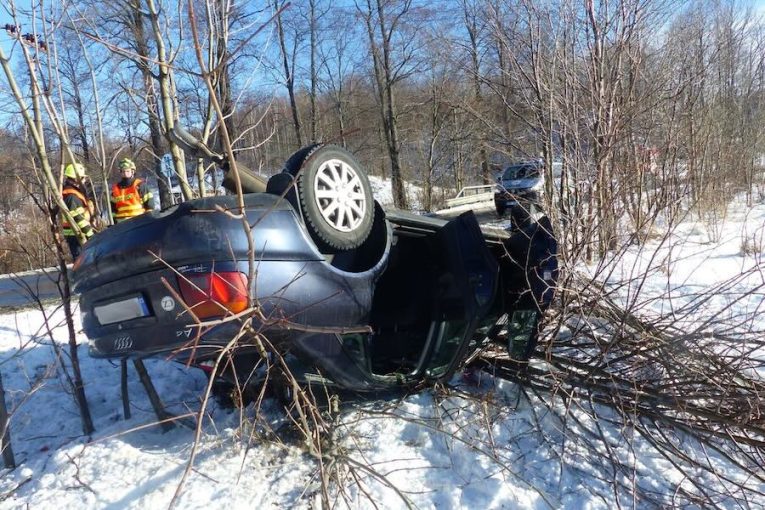Mladý řidič otočil auto na střechu