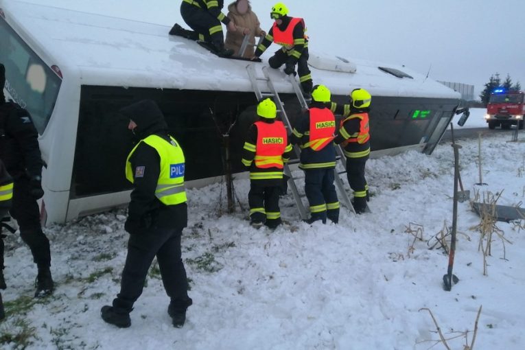 Cestující “vystupovali” z havarovaného autobusu střešním oknem