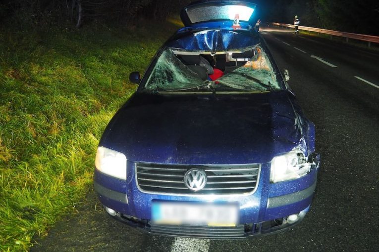 Jedna laň, dvě bouračky. Laň je odnesla životem, jeden řidič se lehce zranil