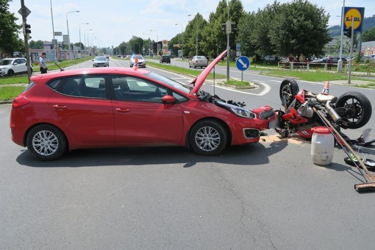 Do křižovatky vjel na červenou a srazil motorkáře