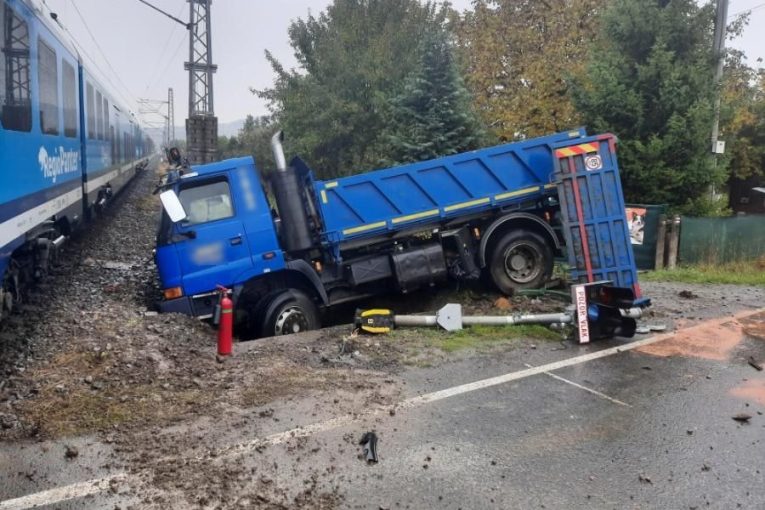 ŠUMPERSKO – Dnes pár minut po půl druhé odpoledne vjel na železničním přejezdu ve Vikýřovicích na Šumpersku náklaďák do cesty projíždějícímu vlaku. Ačkoli srážka vypadala hrozivě, řidič náklaďáku měl štěstí …