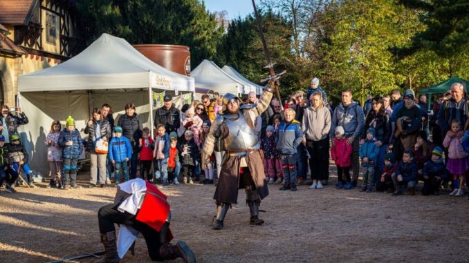 Na umění šermířů, které se koná pod hřebčínem, se můžete podívat od dvou hodin odpoledne. Zavítat můžete také do otevřeného zámku Slatiňany s ochutnávkou svatomartinských rohlíčků, upečených v zámecké kuchyni. V hřebčíně si zase užijete komentované prohlídky stájí, které jsou připraveny na 11:00 hodin, 12:00 hodin, 14:00 hodin a 15:00 hodin.