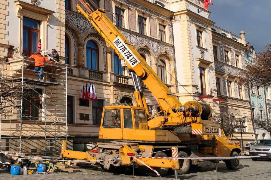 Novorenesanční radnici města Pardubice budou brzy zdobit nově opravené historické balkony. V úterý začala konečná fáze oprav. „Restaurátorská firma pod vedením Petra Rejmana z Fakulty restaurováni Univerzity Pardubice musela nejprve vyrobit repliky nepoužitelných pískovcových částí a nyní probíhá jejich instalace zpět na budovu,“ uvedl náměstek primátora města Jan Hrabal. Největší díly balkonu váží zhruba osm set padesát kilogramů, další stovku až sto padesát kilogramů pak představují samotné odlitky.
