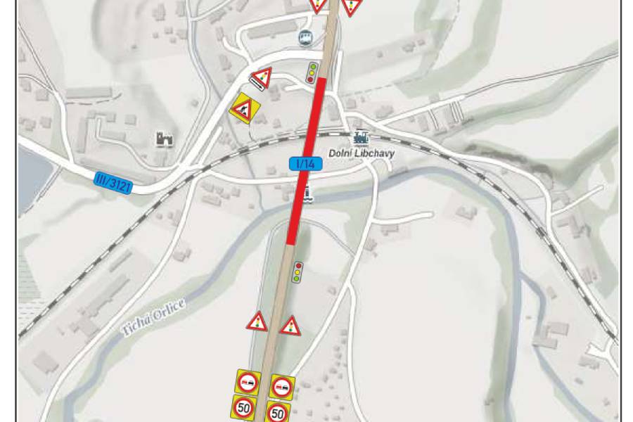 V termínu od 24. dubna do 20. května bude částečně uzavřen provoz na silnici I/14 Dolní Libchavy. „V pracovní době bude provoz řízen proškolenými osobami, mimo pracovní dobu světelným signalizačním zařízením. Objízdná trasa není navržena,“ uvedlo vedení města. Ústí nad Orlicí není účastníkem řízení ani dotčeným orgánem a nemělo tedy možnost zasáhnout do povolení uzavírky, která může se současnou uzavírkou Lanšperk – Dolní Dobrouč omezit dopravu.